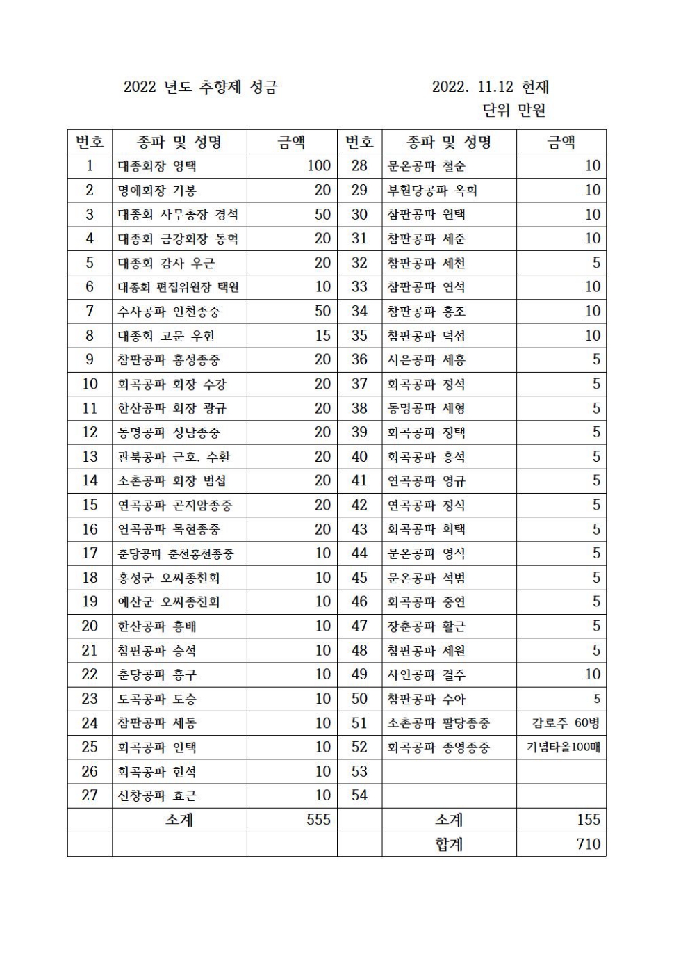 2022년 11월 12일 추향제 성금